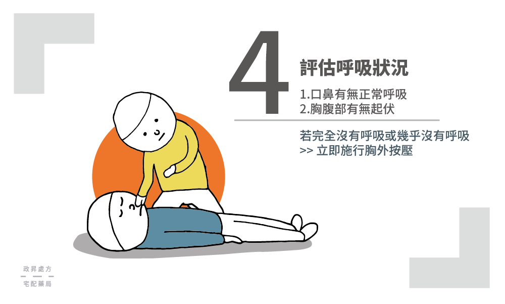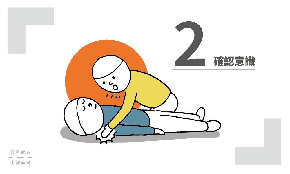 確認現場安全後,你可以呼叫患者、輕拍雙肩確認意識狀態。如果患者沒有回應、沒有移動肢體或產生任何表情變化、沒有發出任何聲音,就可以確定患者沒有意識。